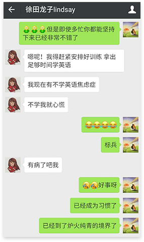 其实,我在必克学英语也是这样,有专属外教,从陌生到熟悉、从熟悉到默契,我英语能有今天的成绩,有一半功劳是外教老师的~